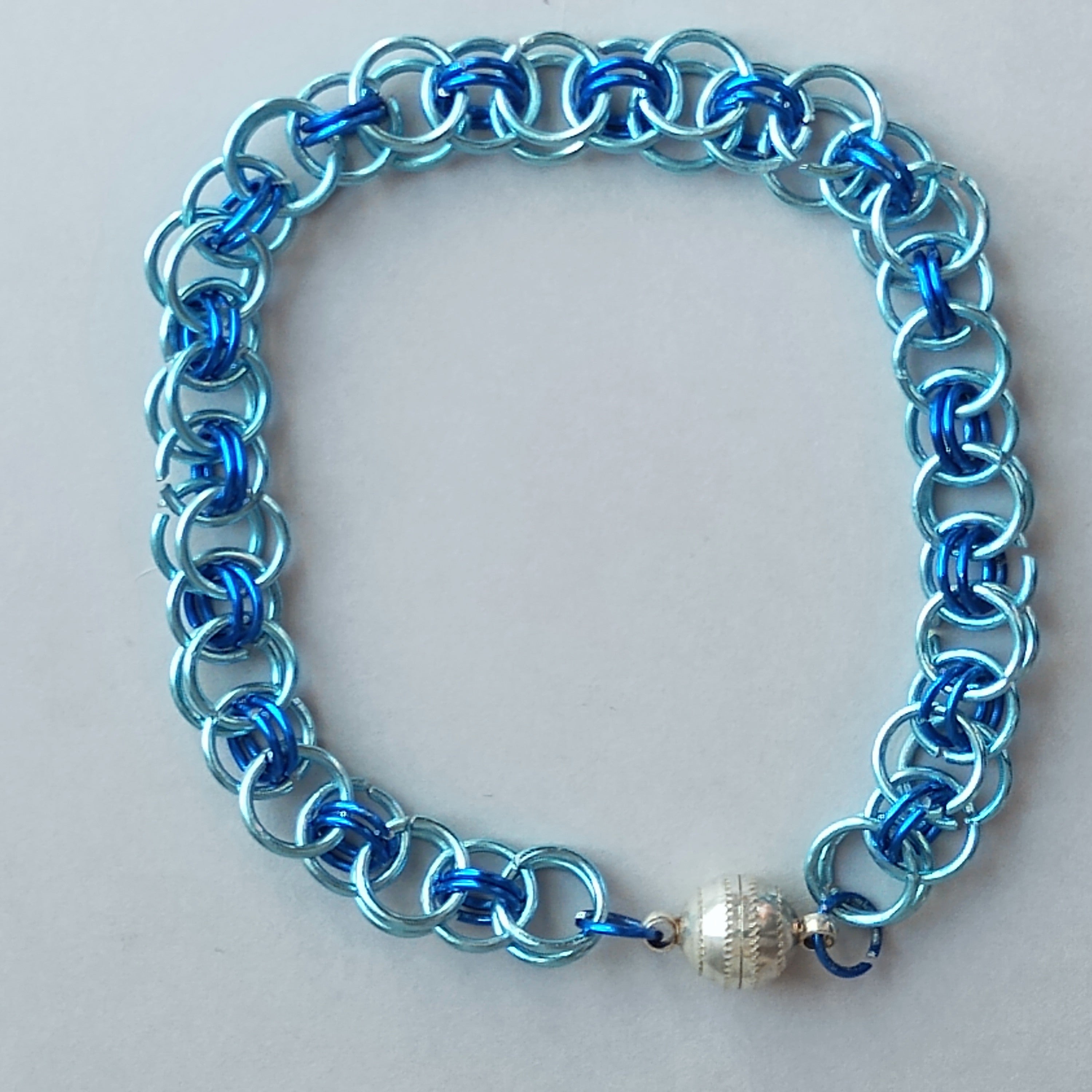 Blue stainless steel chainmaille bracelet